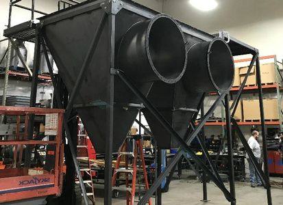 March 30, 2018: Aerospace Facilities Group finishing up one of two 32-cartridge dust collectors for our CH-47 helicopter blast booth project. This one of the dust collectors to be installed on our manufactured abrasive blast booth. The photos show only the hoppers of the collectors. All of our equipment gets assembled in the shop prior to being shipped to ensure a clean installation in the field.