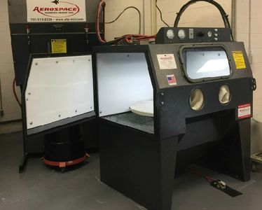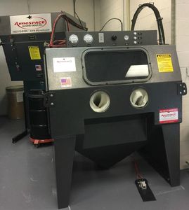 December 15, 2016: Selfridge AFB just received their new GEN-3 abrasive blast cabinets. The pictured cabinet is lined with our patented "Blast Shield Armor" to help protect the cabinet and cyclone separator from wear while using aggressive media.